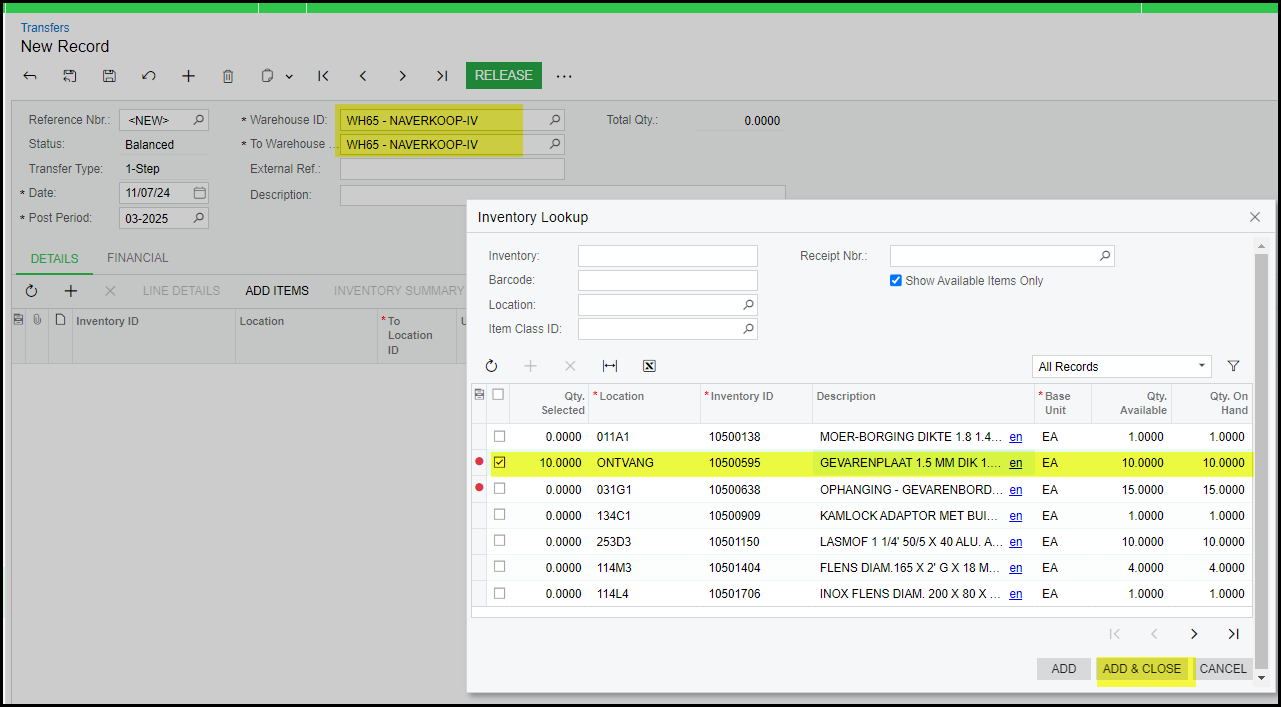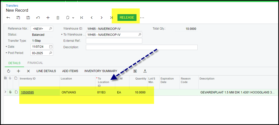 How to transfer stock to another location