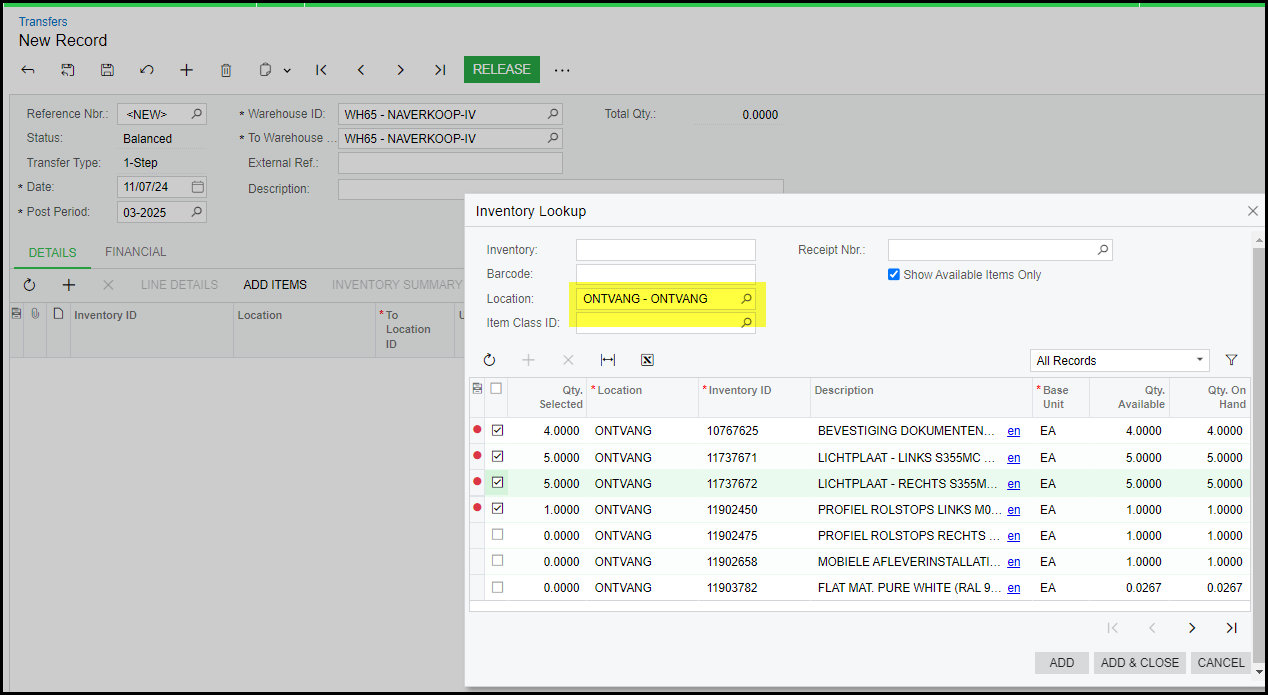 You can select a location like - ONTVANG