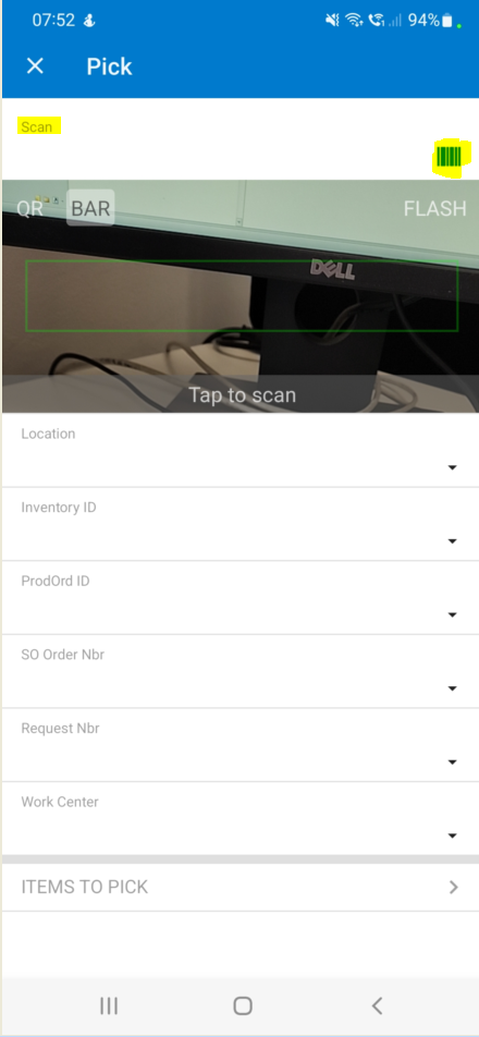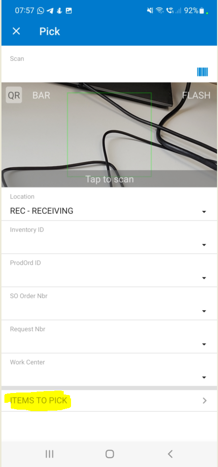 3. Once you have scanned the Location, tap on "ITEMS TO PICK":