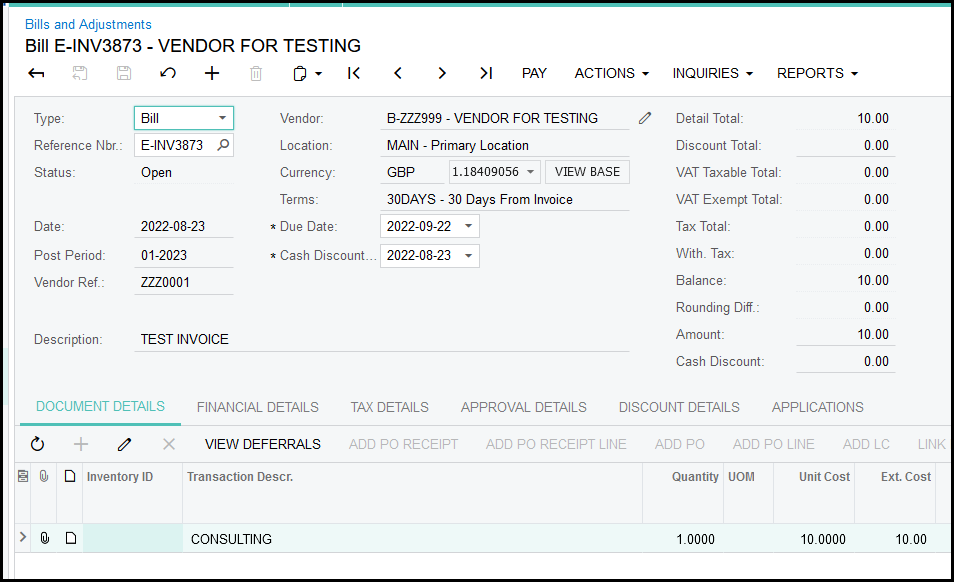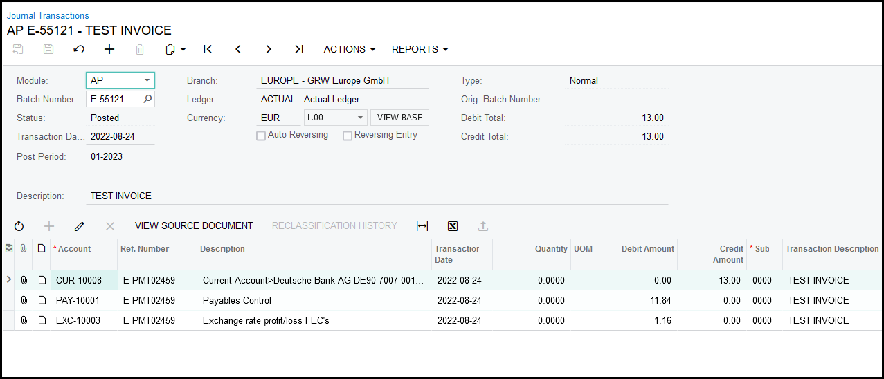 6. Go to financial detail to view the gl batch that was processed. You will the that the foreign exchange loss/profit was calculated correctly.