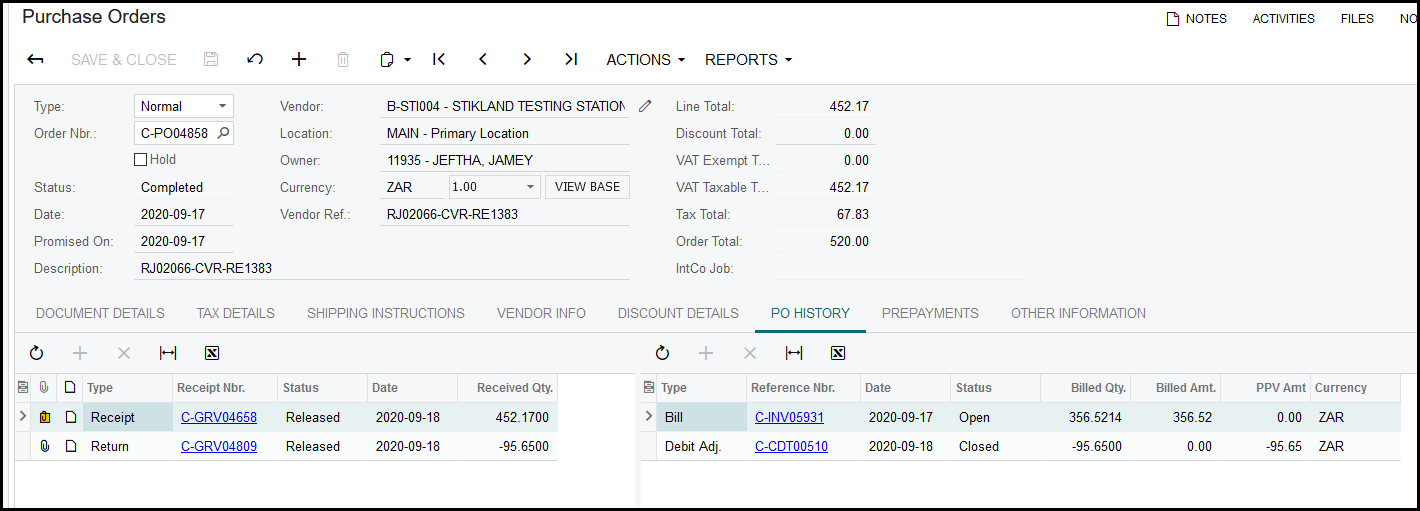 In the example below a C-CDT was also processed against the return - this was incorrect and is NOT necessary.