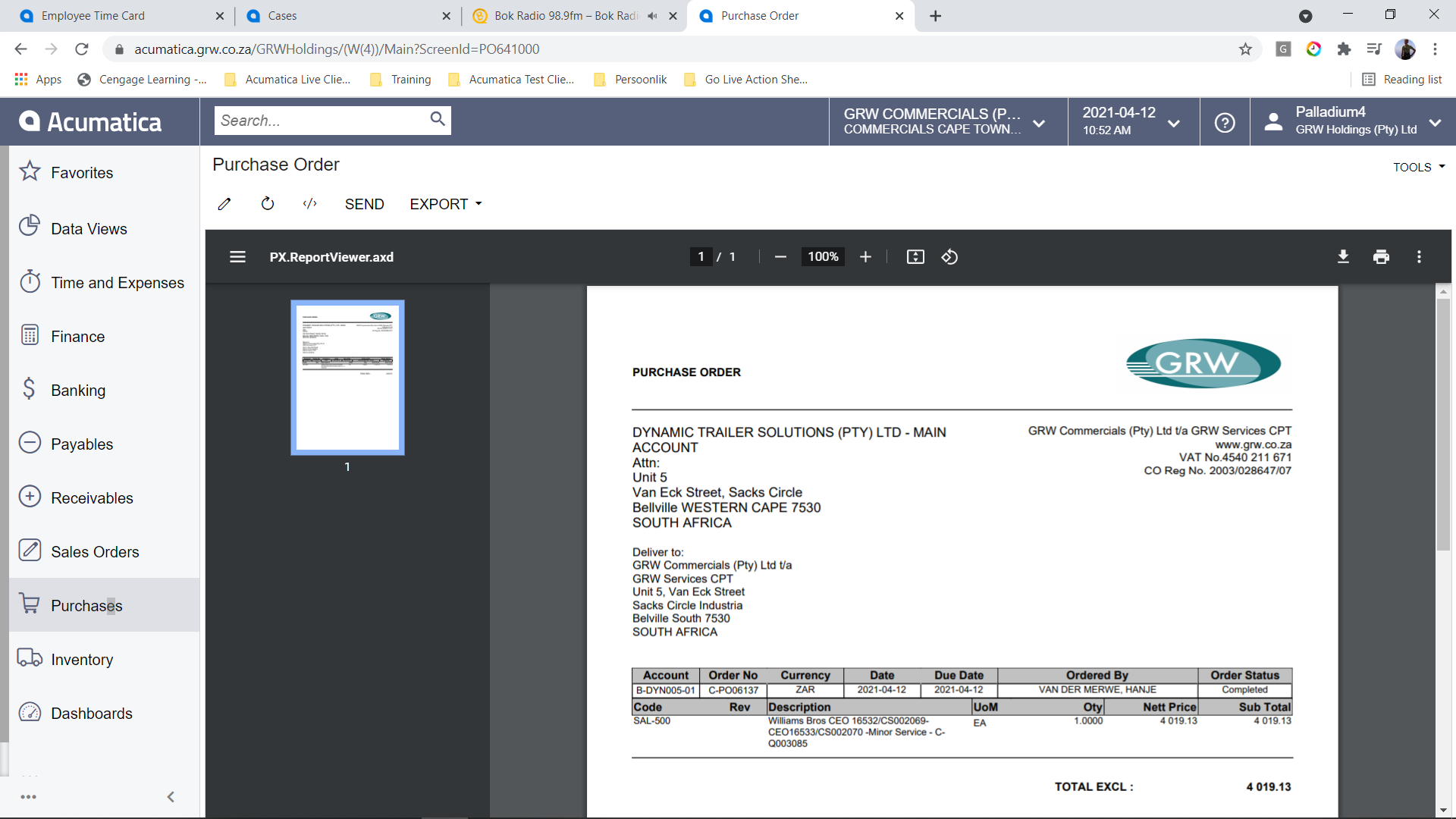 Subject: PO Descrition length of cell when printing