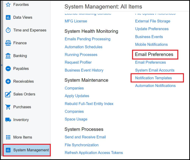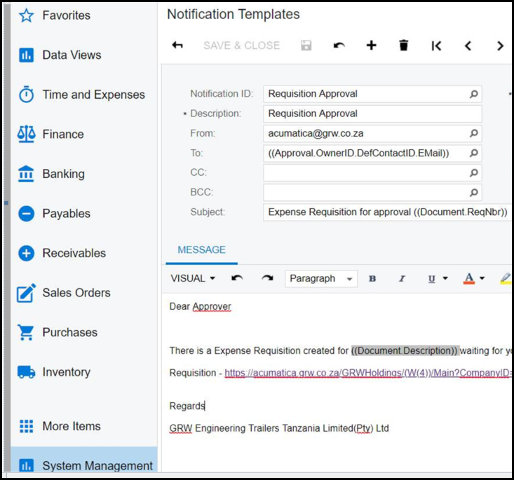 3. Go to system management to setup the notification template to send out the request for approval.