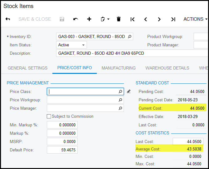 - The current cost or average cost will be used as purchase price if no price was loaded in a price worksheet.