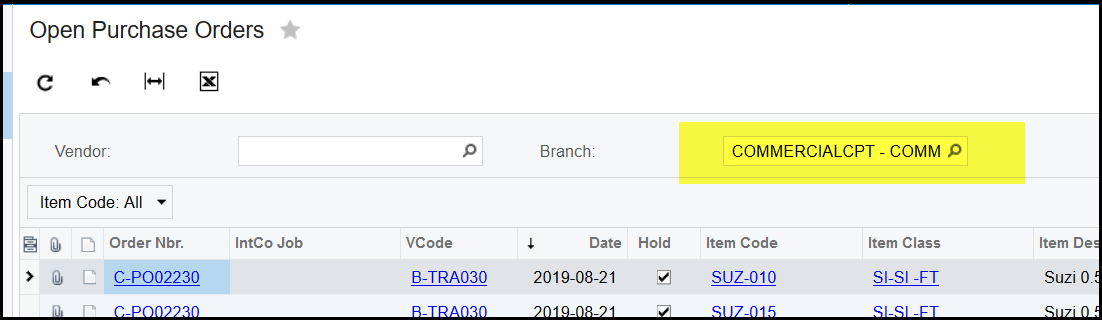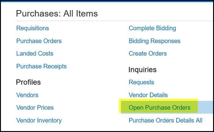 1. Go to Purchase>Inquiries - Open Purchase orders