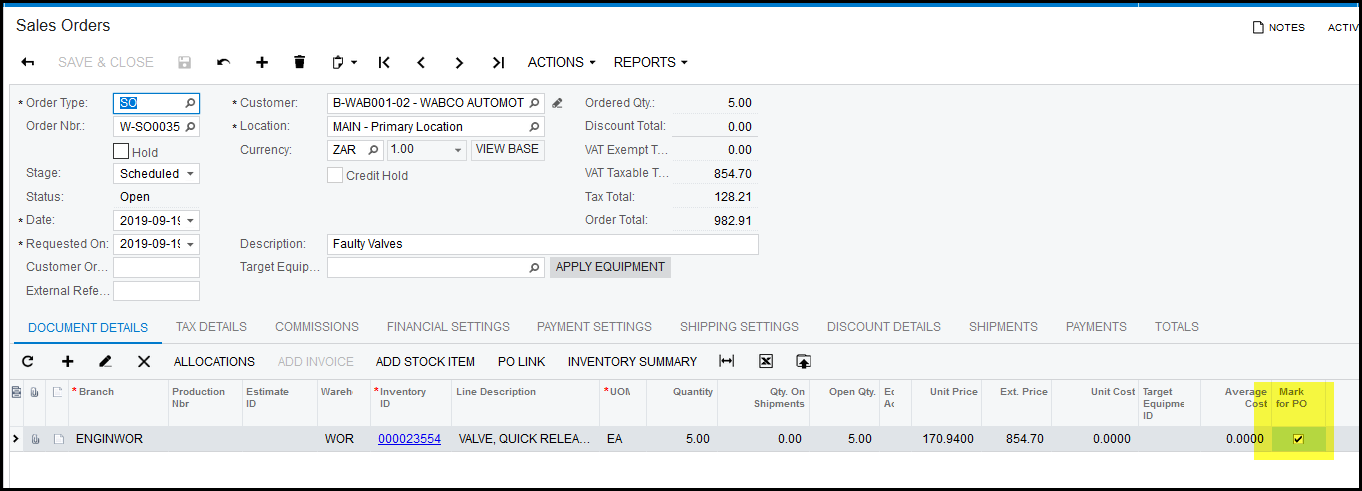 The line item on the SO was marked for PO.