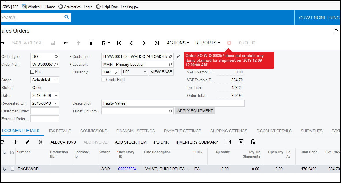1. Order does not contain any items planned for shipments.
