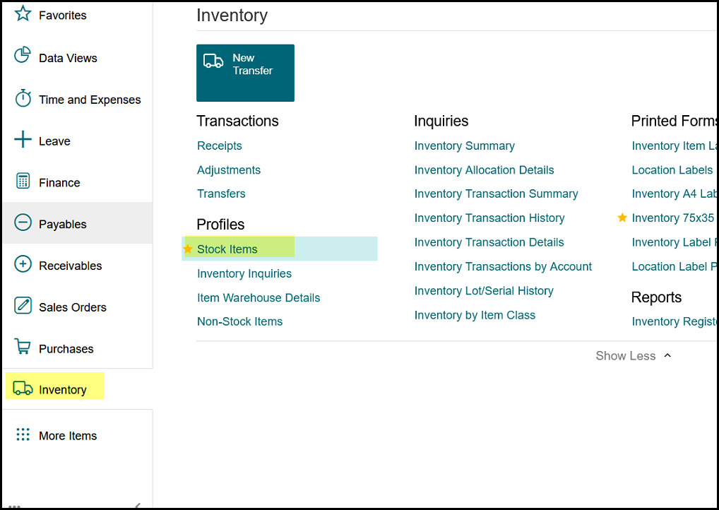 1. Go to stock items menu>stock items