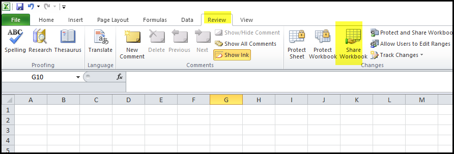 1. Click on the review tab>share workbook