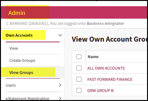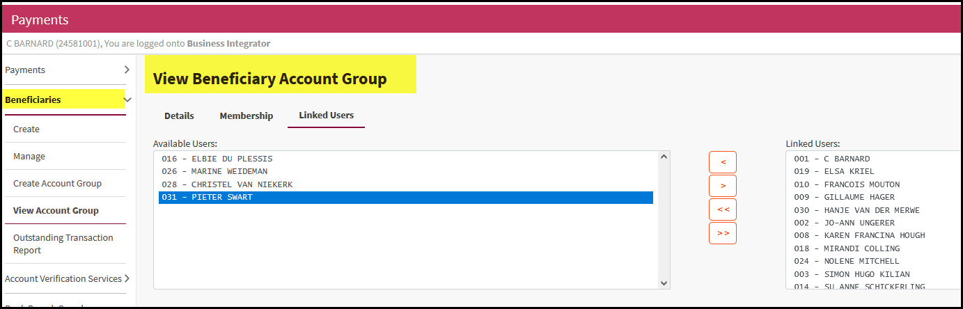 1. Go to Payments > Beneficiaries>View Account Group