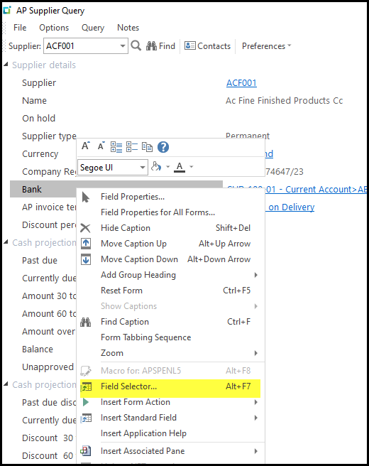 1. In this case right click on the supplier details screen.