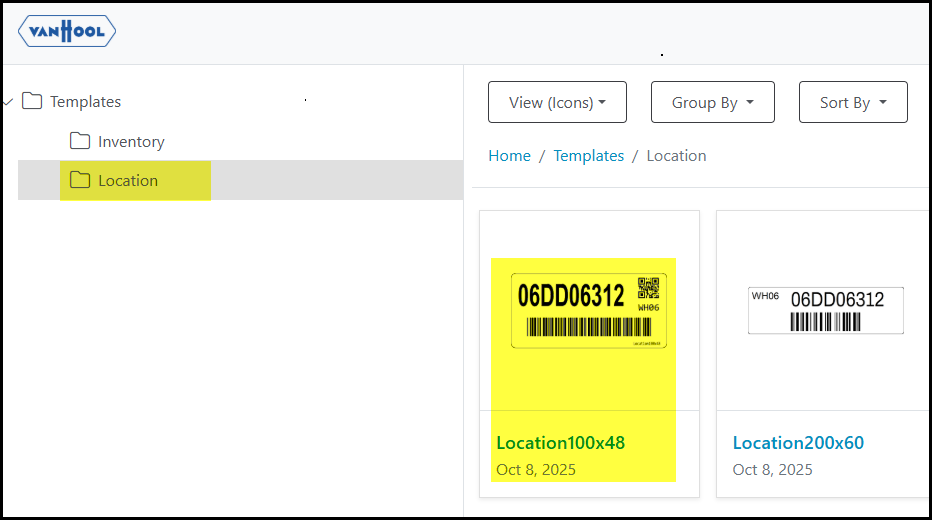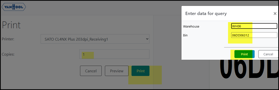 1. Click on location to print BIN location labels.