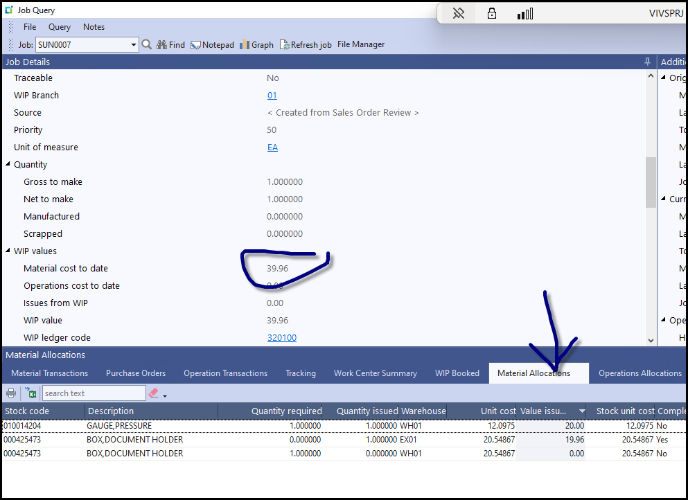1. View your job on job query. Check the cost and labour issued in this case no labour was issued.