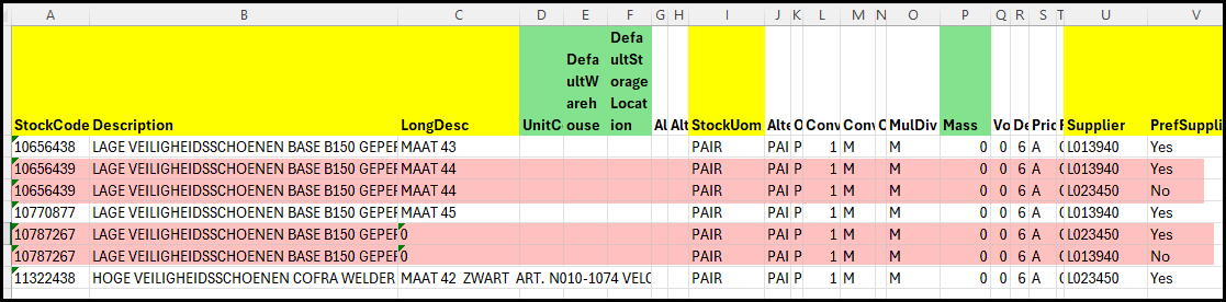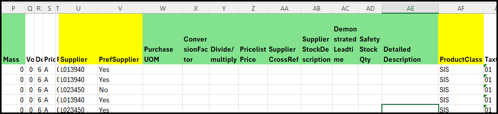 Column AF - ProductClass - for consumables it will Be SIS of SIA. The SI stands for Stock item and the S or A at the