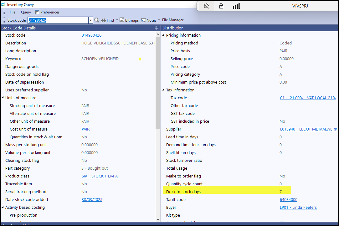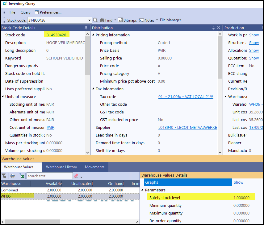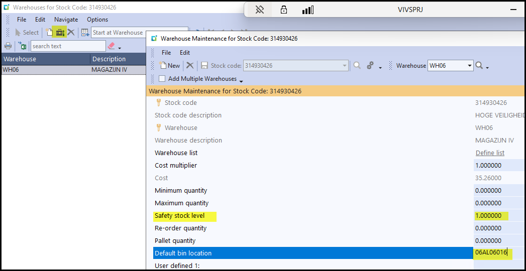 2.2 Safety Stock in Syspro is per warehouse. We only work on the Safety Stock field, see below.