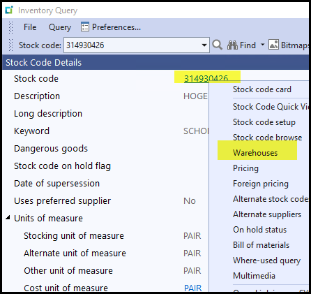 To view it please see below click on the warehouse and see the far right pan which indicates the values.