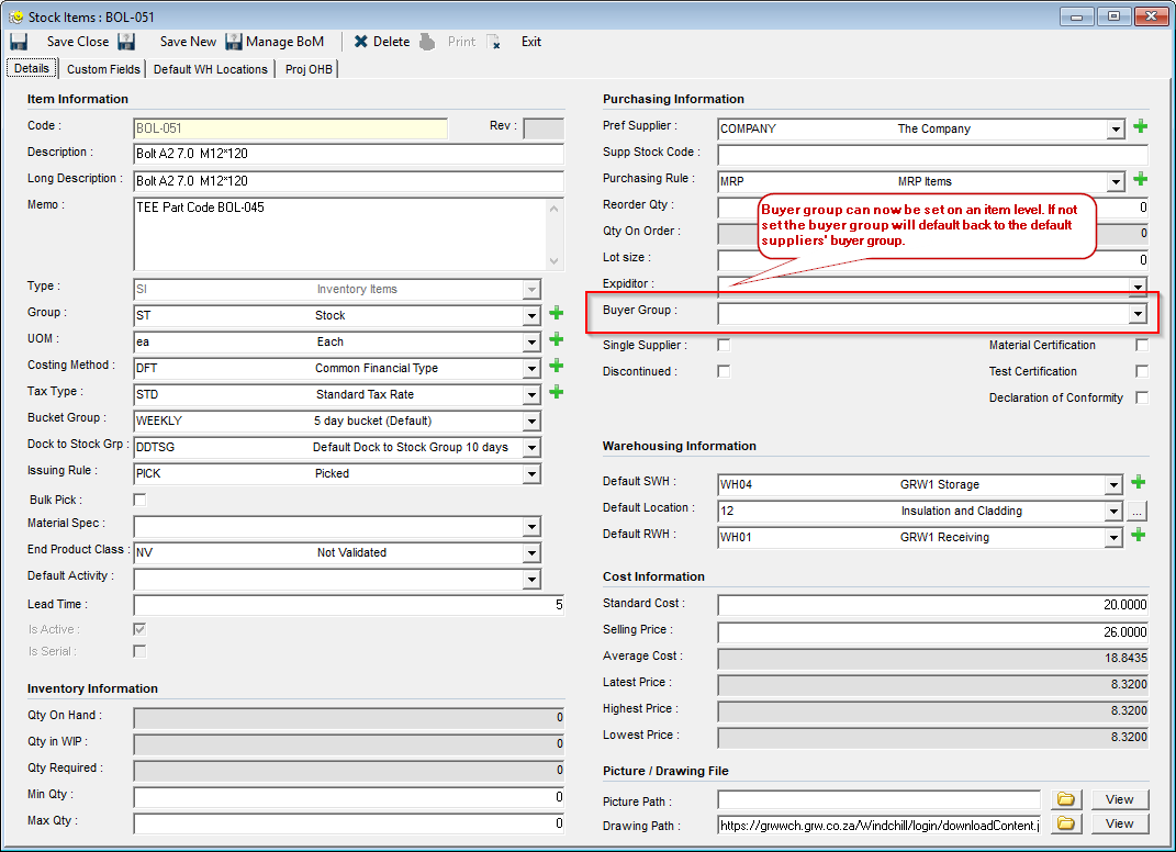 - Buyer group can be set on an item to override the buyer group on the default supplier.