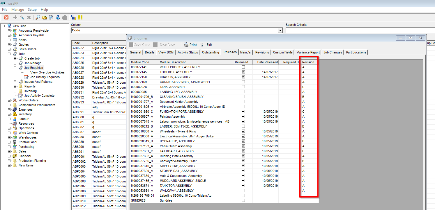 - Added module revision to the releases tab of the Job Enquiries screen. This will always display the latest revision.